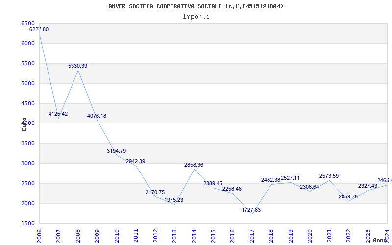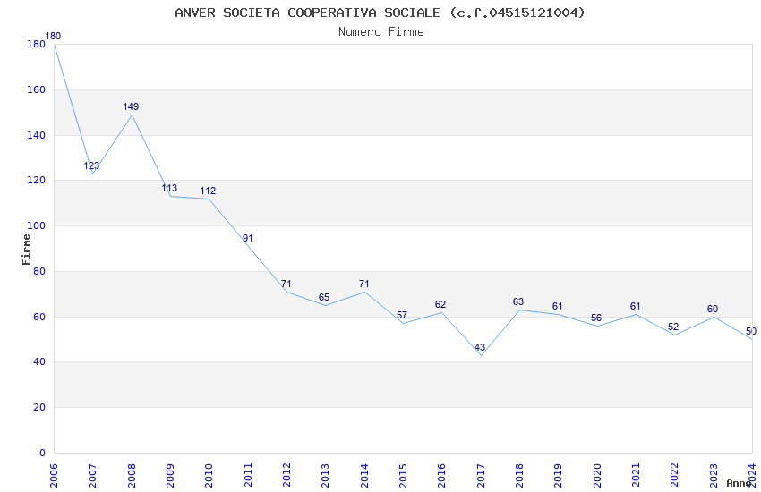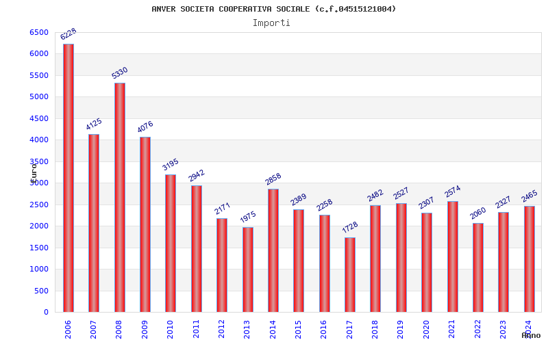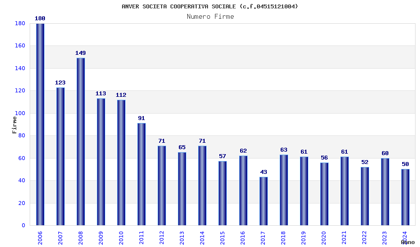 | Anno | Firme | Importi | Media | Naz. | Reg. | Prov. | Comu. |