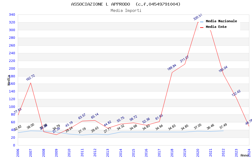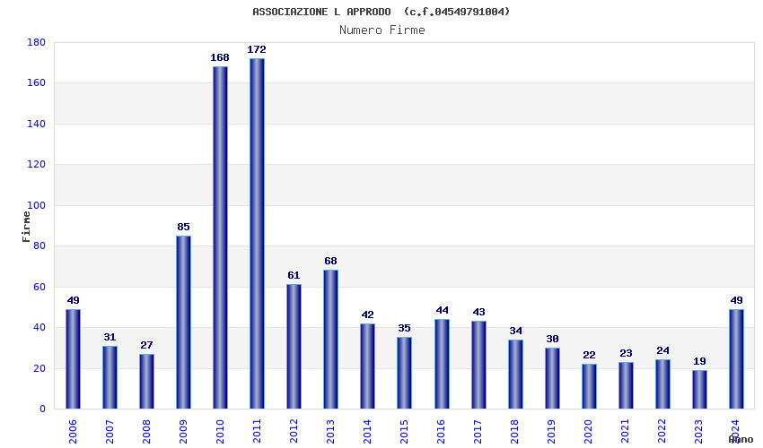 | Anno | Firme | Importi | Media | Naz. | Reg. | Prov. | Comu. |