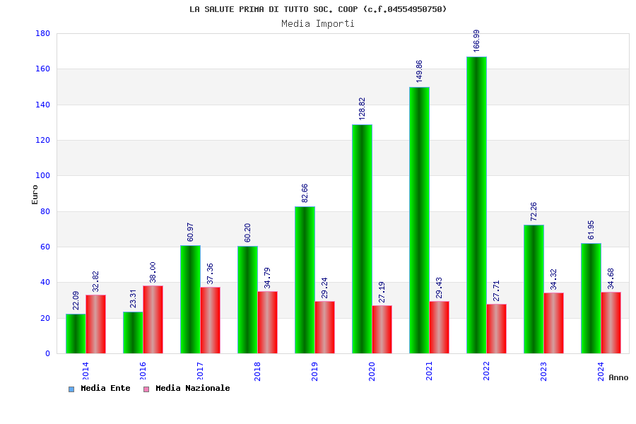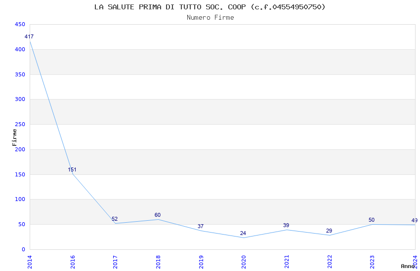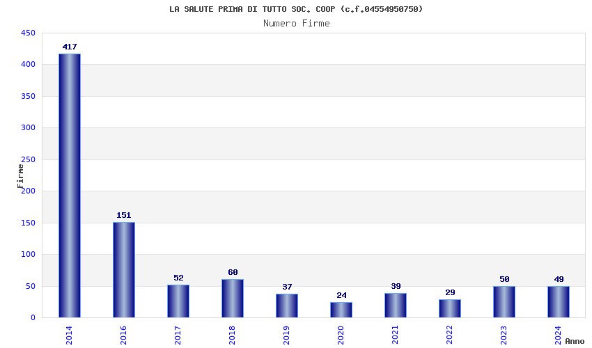 | Anno | Firme | Importi | Media | Naz. | Reg. | Prov. | Comu. |