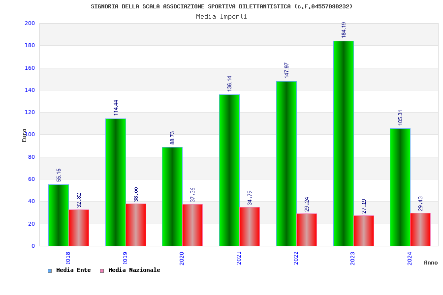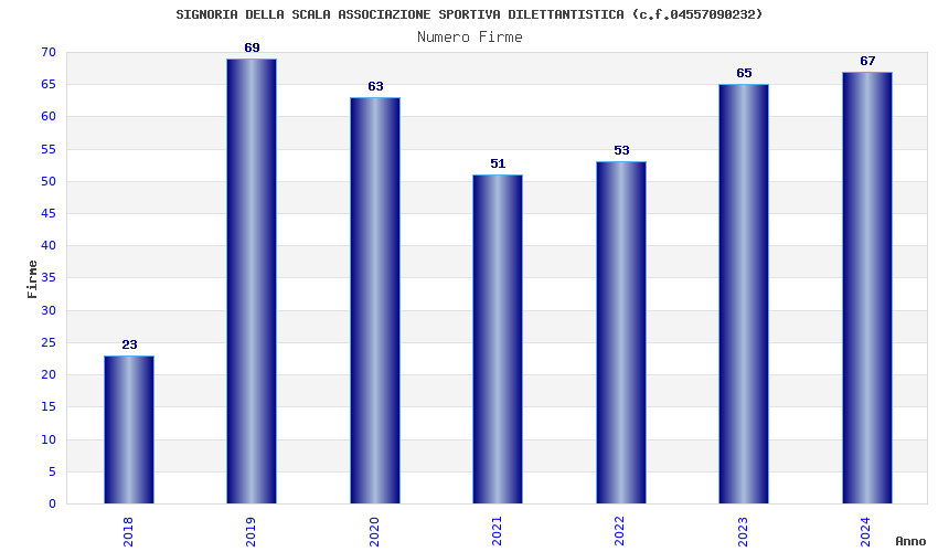 | Anno | Firme | Importi | Media | Naz. | Reg. | Prov. | Comu. |