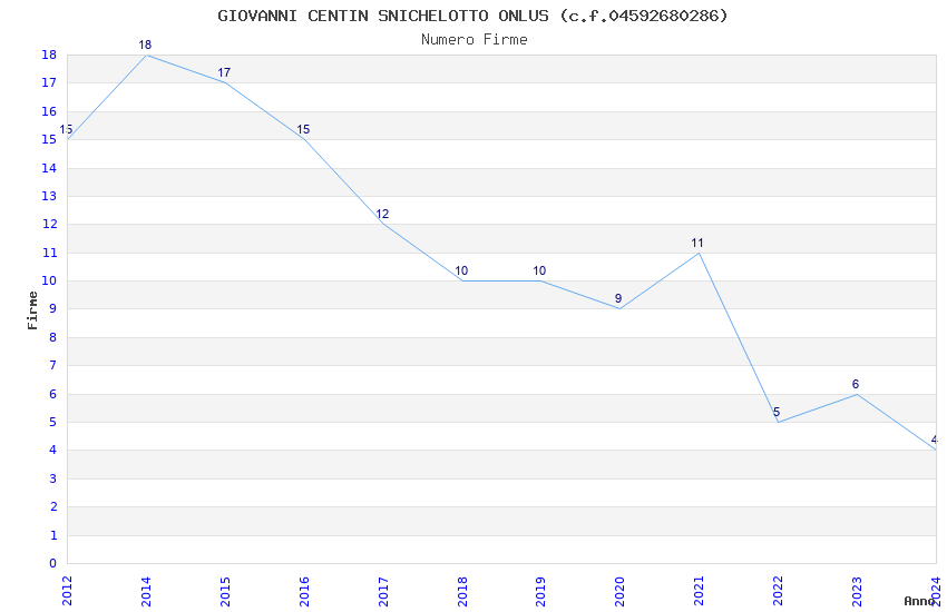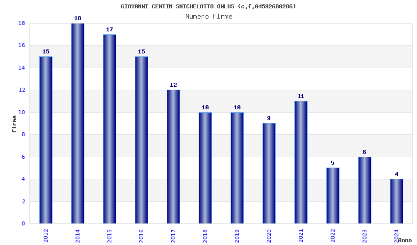 | Anno | Firme | Importi | Media | Naz. | Reg. | Prov. | Comu. |