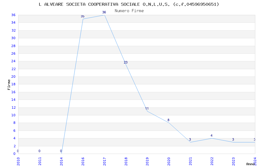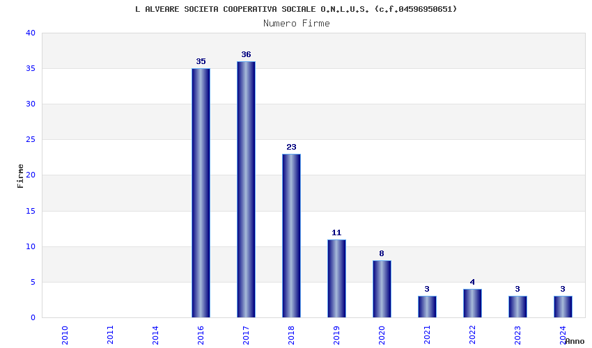 | Anno | Firme | Importi | Media | Naz. | Reg. | Prov. | Comu. |