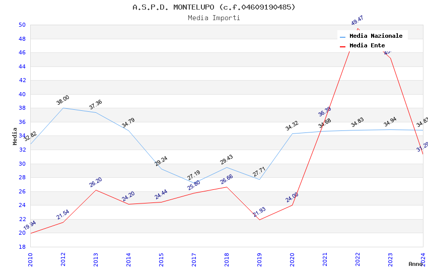 | Anno | Firme | Importi | Media | Naz. | Reg. | Prov. | Comu. |