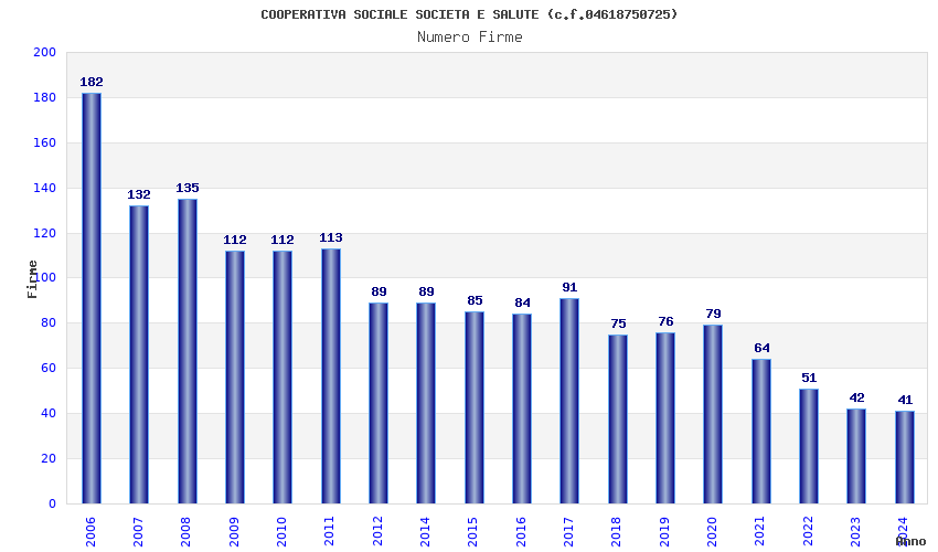 | Anno | Firme | Importi | Media | Naz. | Reg. | Prov. | Comu. |