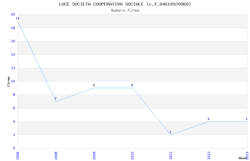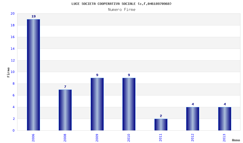 | Anno | Firme | Importi | Media | Naz. | Reg. | Prov. | Comu. |