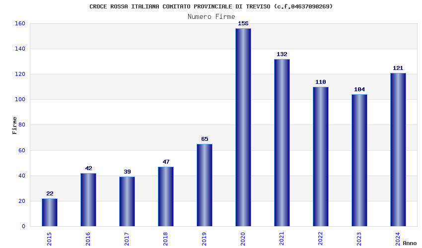 | Anno | Firme | Importi | Media | Naz. | Reg. | Prov. | Comu. |