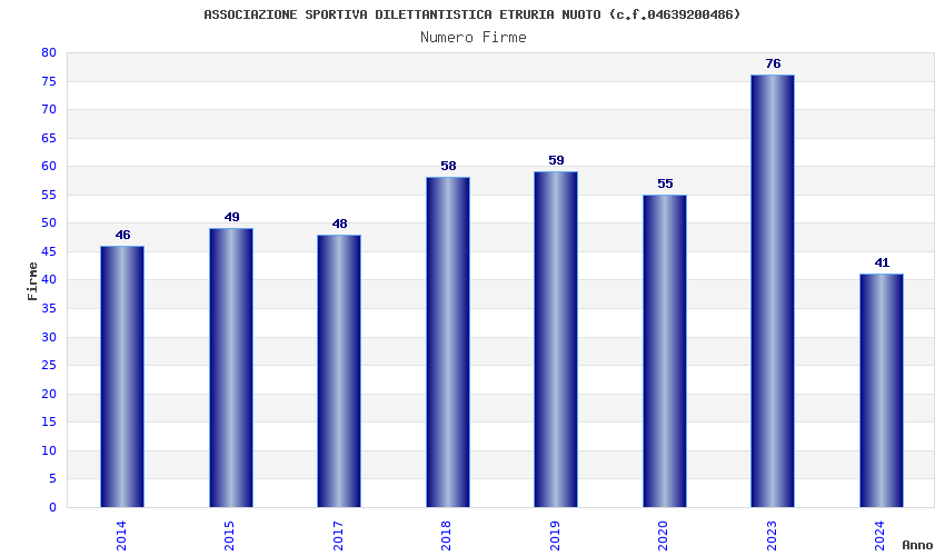 | Anno | Firme | Importi | Media | Naz. | Reg. | Prov. | Comu. |