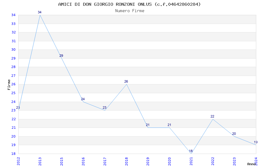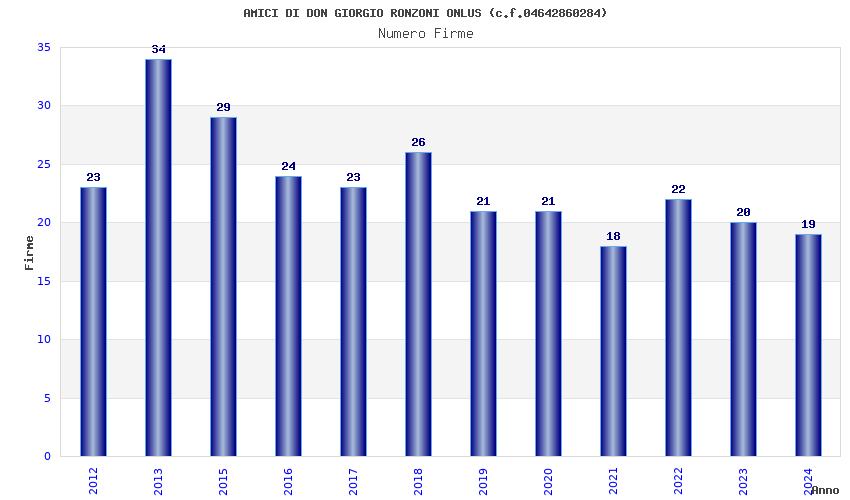 | Anno | Firme | Importi | Media | Naz. | Reg. | Prov. | Comu. |