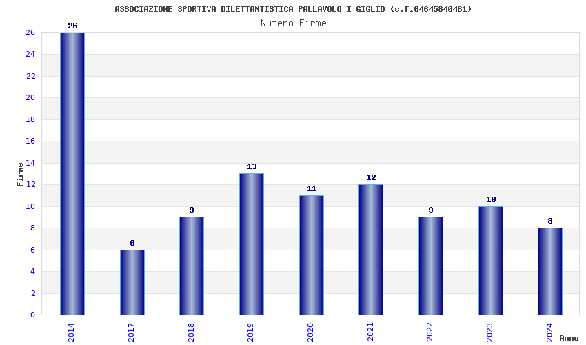 | Anno | Firme | Importi | Media | Naz. | Reg. | Prov. | Comu. |