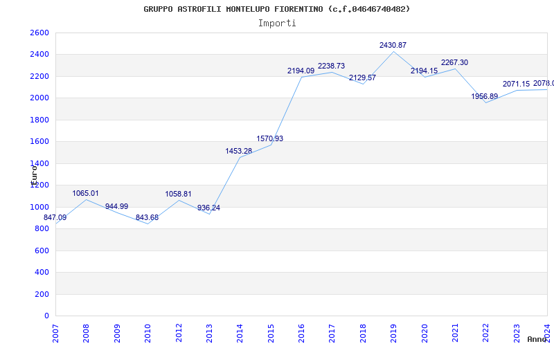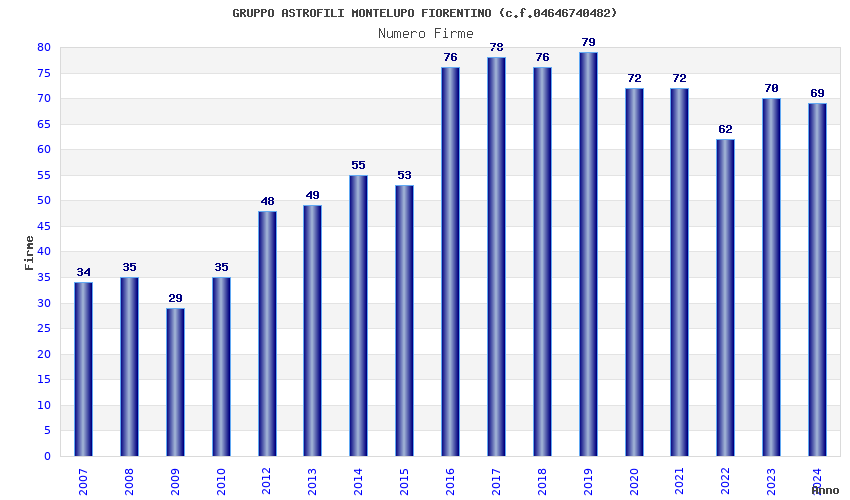 | 2024 | 69 | 2.078,02 | 30,12 | 23.360 | 1.404 | 438 | 4 |