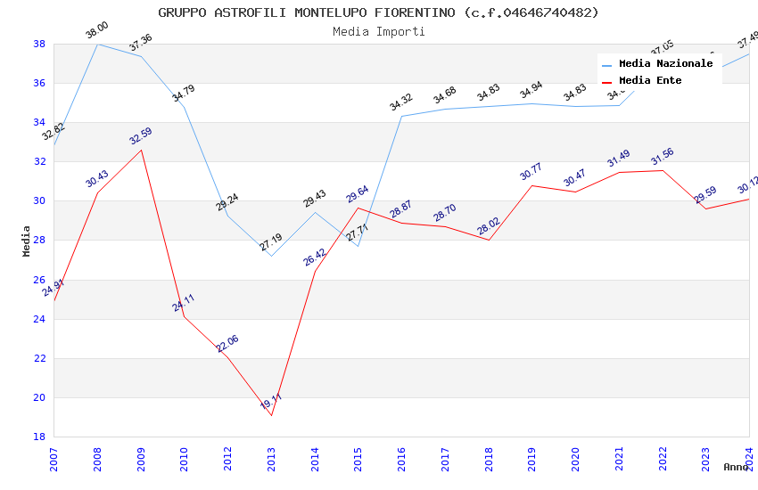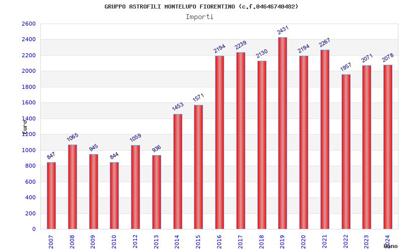 | Anno | Firme | Importi | Media | Naz. | Reg. | Prov. | Comu. |
