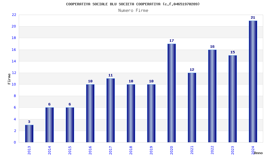| 2024 | 21 | 328,59 | 15,65 | 58.295 | 5.397 | 1.121 | 14 |