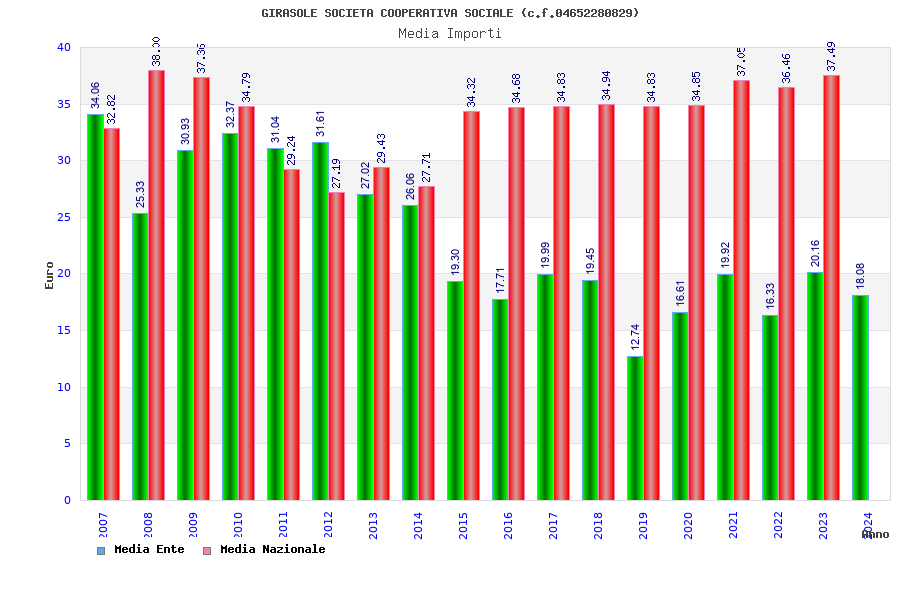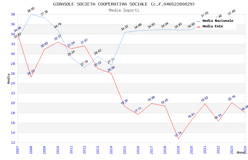 | Anno | Firme | Importi | Media | Naz. | Reg. | Prov. | Comu. |