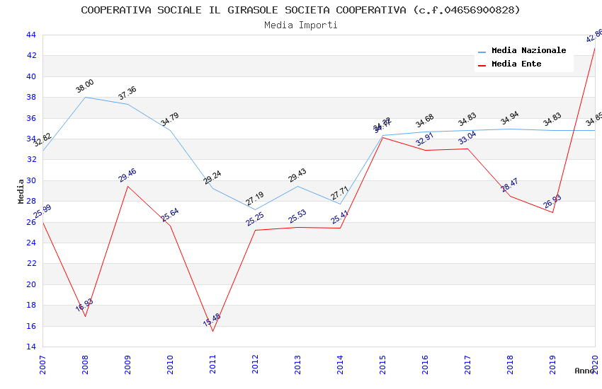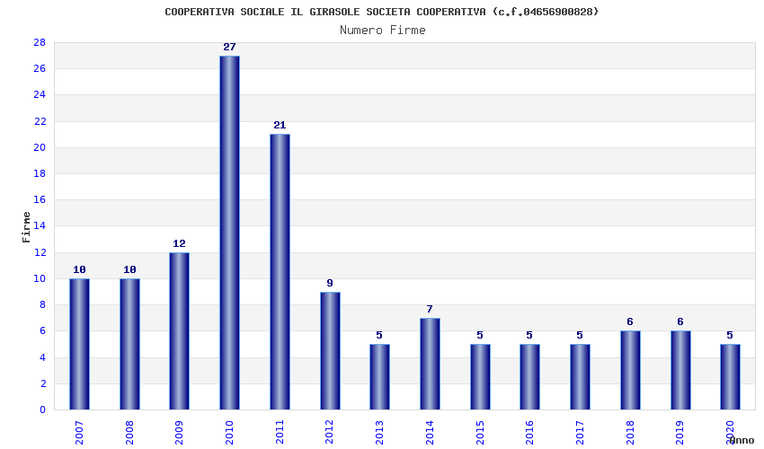 | Anno | Firme | Importi | Media | Naz. | Reg. | Prov. | Comu. |