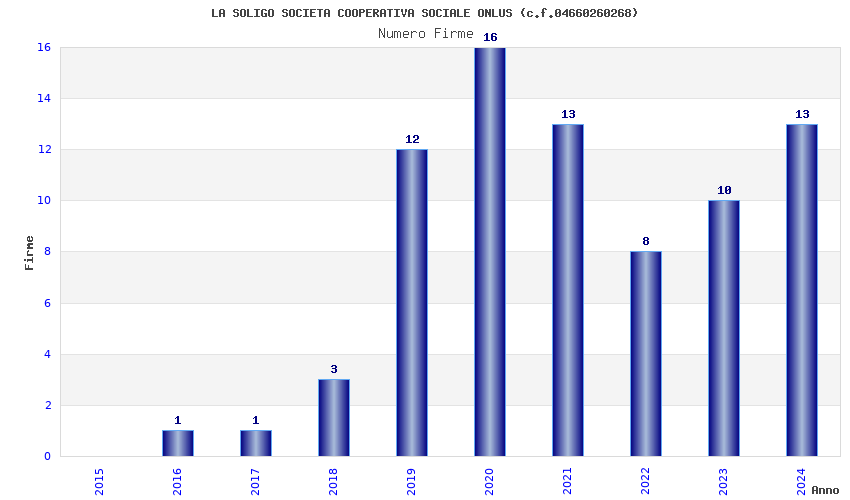 | Anno | Firme | Importi | Media | Naz. | Reg. | Prov. | Comu. |