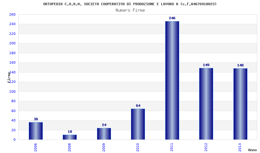 | Anno | Firme | Importi | Media | Naz. | Reg. | Prov. | Comu. |