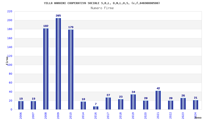 Anno Firme Importi Media Naz. Reg. Prov. Comu.