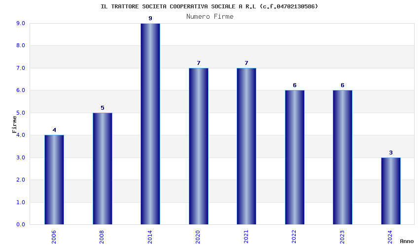 | Anno | Firme | Importi | Media | Naz. | Reg. | Prov. | Comu. |