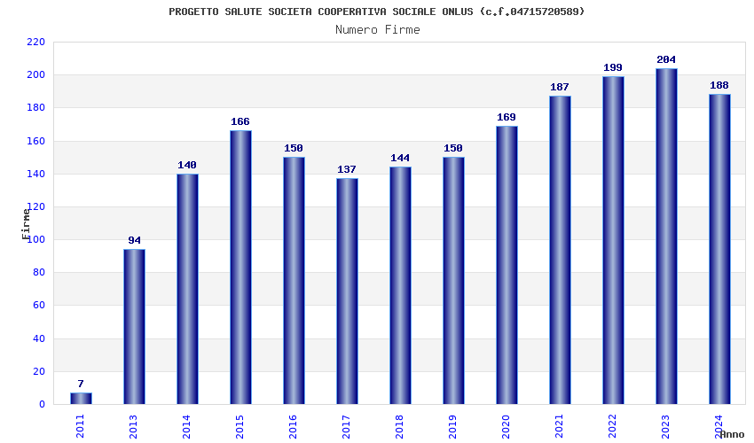 | Anno | Firme | Importi | Media | Naz. | Reg. | Prov. | Comu. |
