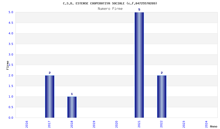| Anno | Firme | Importi | Media | Naz. | Reg. | Prov. | Comu. |