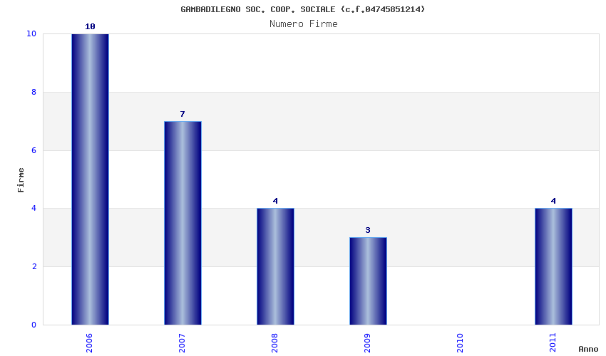 | Anno | Firme | Importi | Media | Naz. | Reg. | Prov. | Comu. |