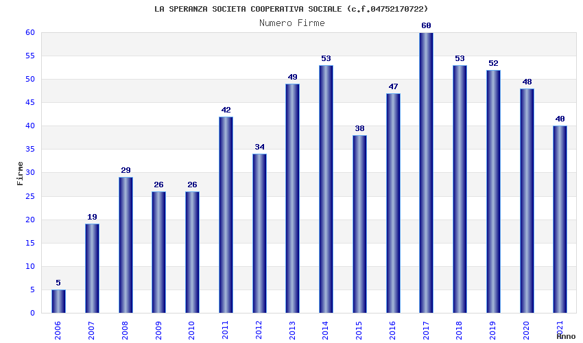 | Anno | Firme | Importi | Media | Naz. | Reg. | Prov. | Comu. |