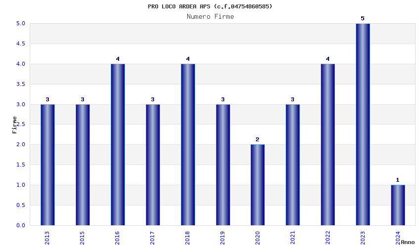 | Anno | Firme | Importi | Media | Naz. | Reg. | Prov. | Comu. |