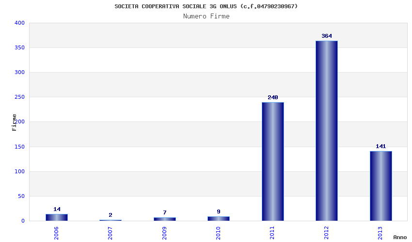 | Anno | Firme | Importi | Media | Naz. | Reg. | Prov. | Comu. |