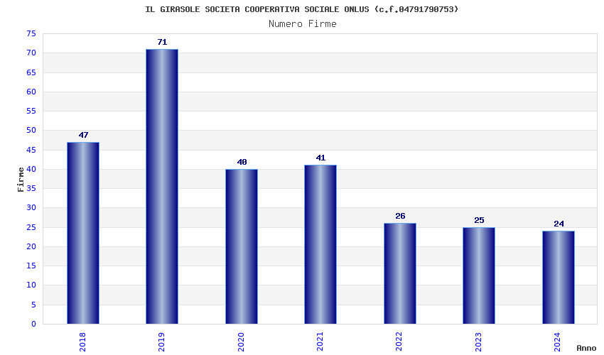 | Anno | Firme | Importi | Media | Naz. | Reg. | Prov. | Comu. |