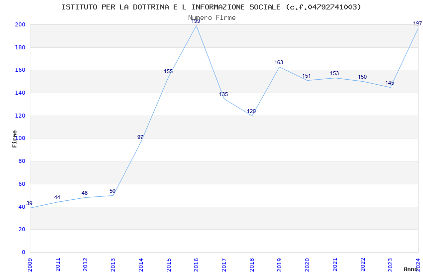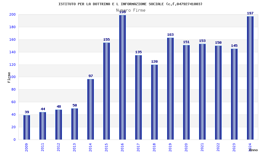 | Anno | Firme | Importi | Media | Naz. | Reg. | Prov. | Comu. |