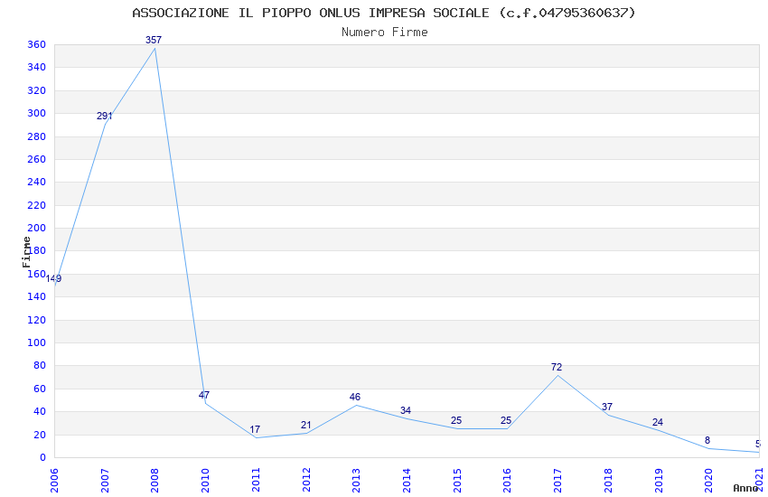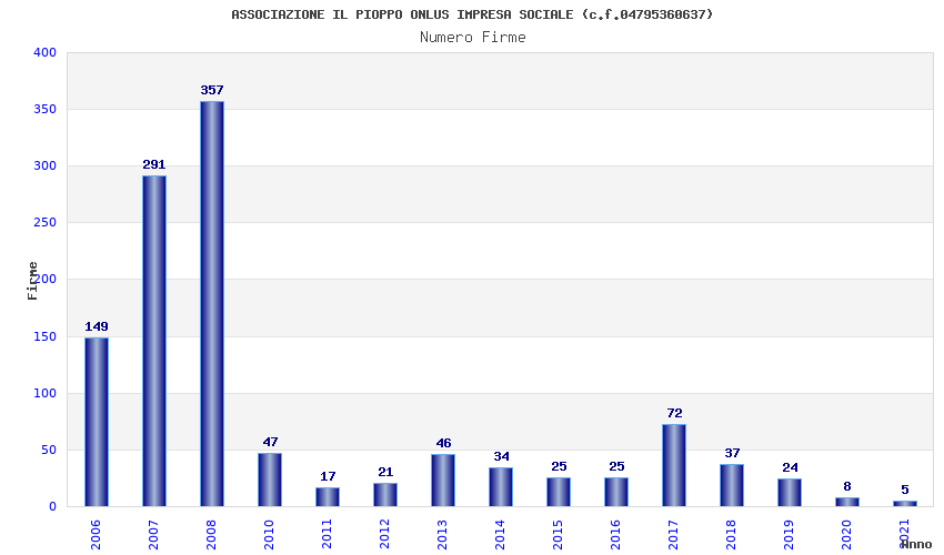| Anno | Firme | Importi | Media | Naz. | Reg. | Prov. | Comu. |