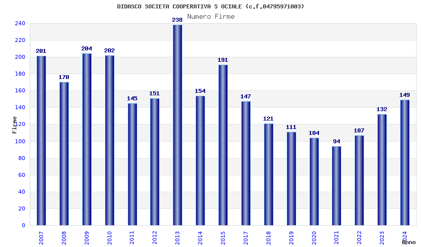 | Anno | Firme | Importi | Media | Naz. | Reg. | Prov. | Comu. |
