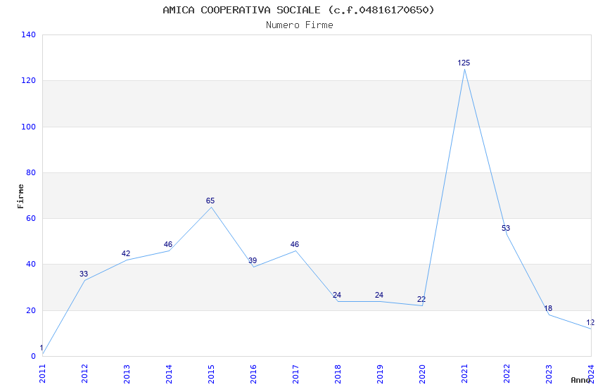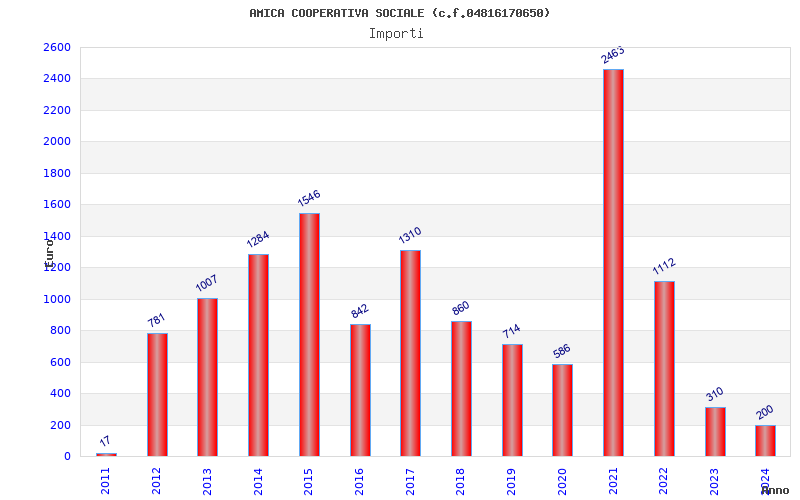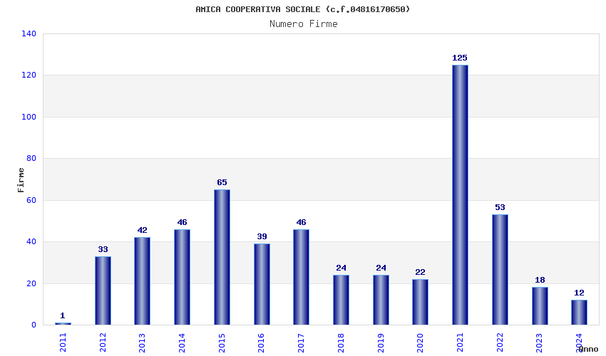| Anno | Firme | Importi | Media | Naz. | Reg. | Prov. | Comu. |