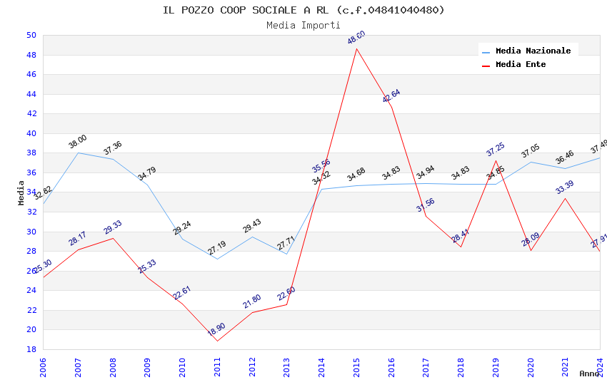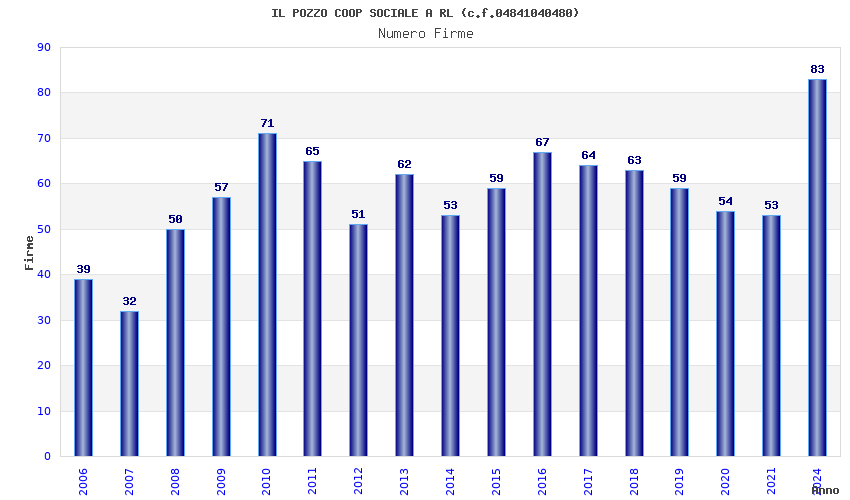 | Anno | Firme | Importi | Media | Naz. | Reg. | Prov. | Comu. |