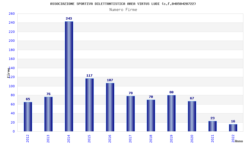 | Anno | Firme | Importi | Media | Naz. | Reg. | Prov. | Comu. |