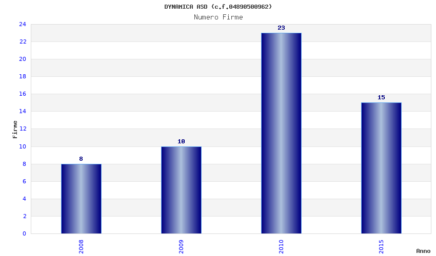| Anno | Firme | Importi | Media | Naz. | Reg. | Prov. | Comu. |