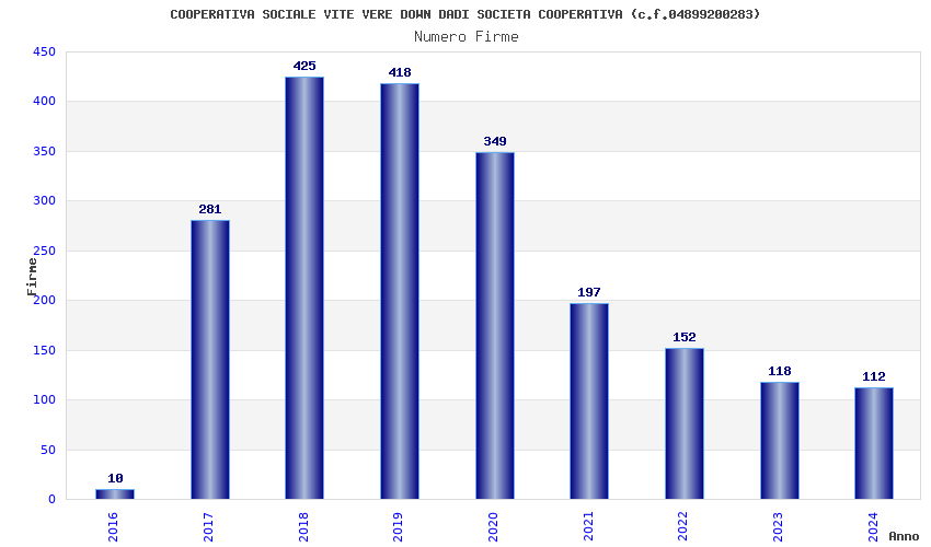 | Anno | Firme | Importi | Media | Naz. | Reg. | Prov. | Comu. |