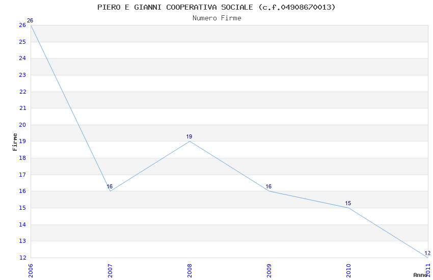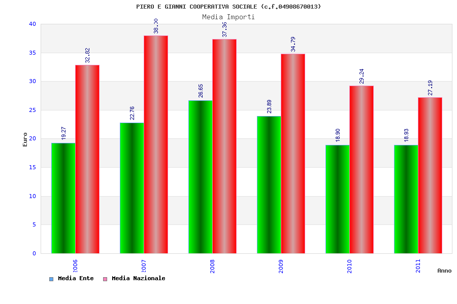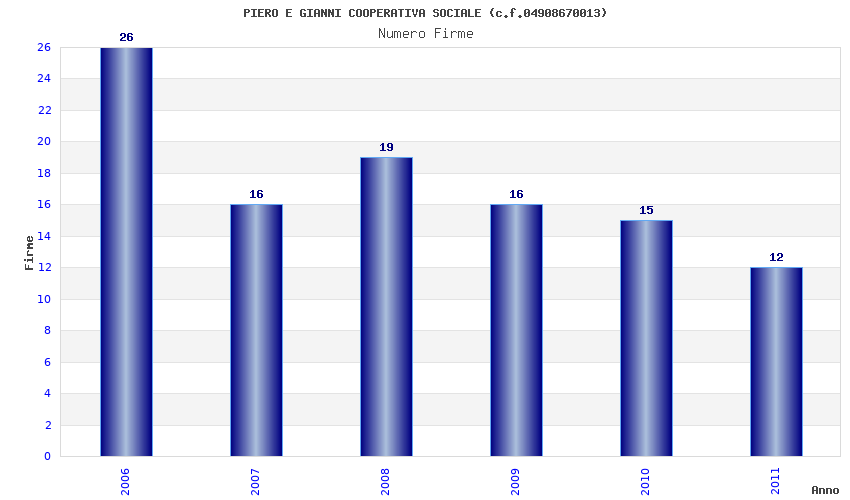 | Anno | Firme | Importi | Media | Naz. | Reg. | Prov. | Comu. |