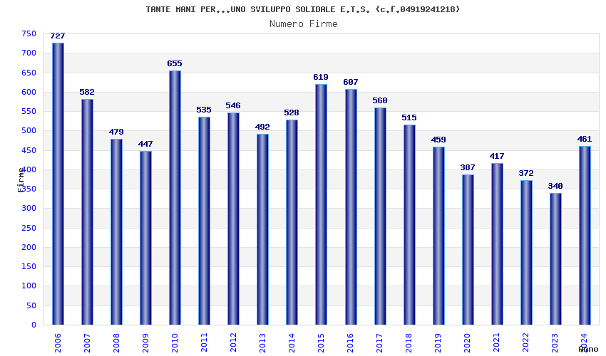 | Anno | Firme | Importi | Media | Naz. | Reg. | Prov. | Comu. |