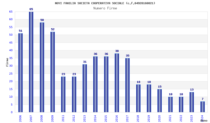 | Anno | Firme | Importi | Media | Naz. | Reg. | Prov. | Comu. |