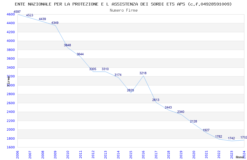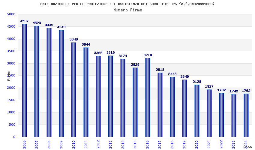 | Anno | Firme | Importi | Media | Naz. | Reg. | Prov. | Comu. |