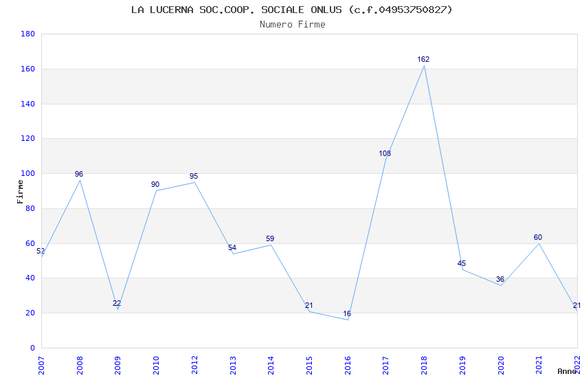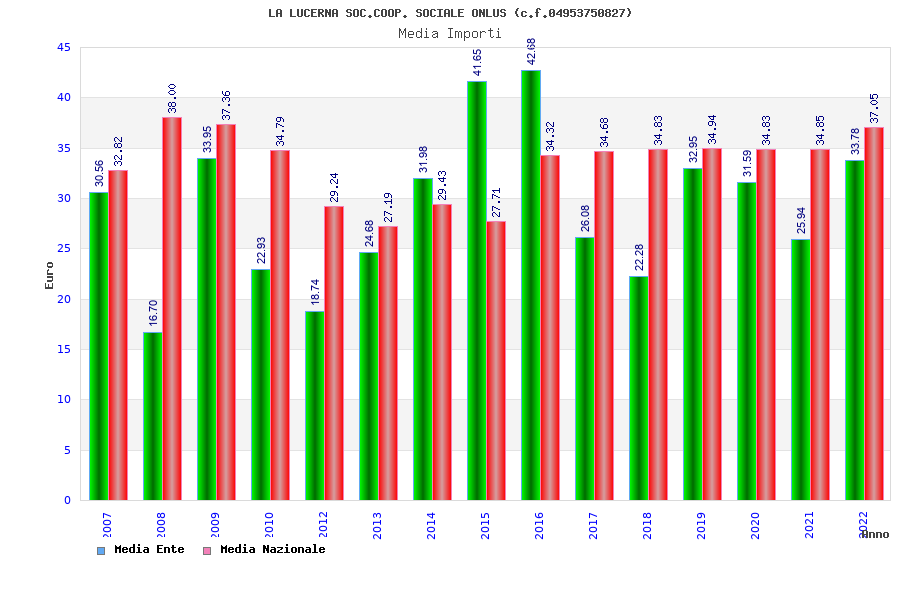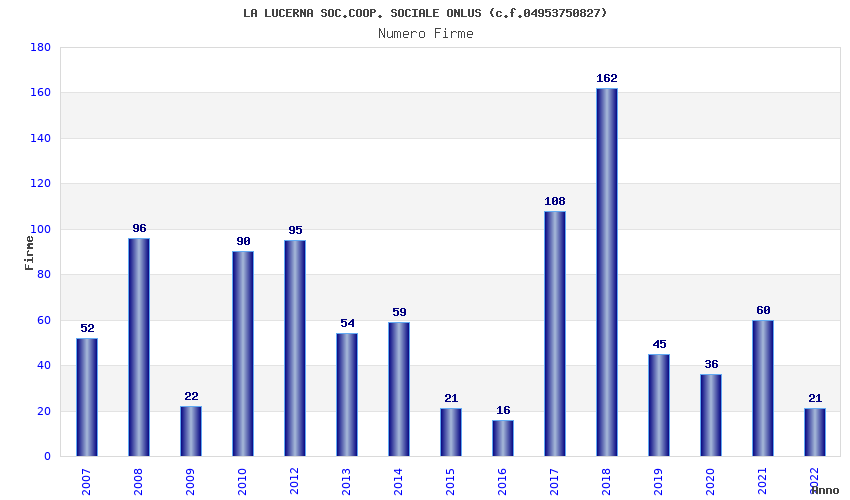 | Anno | Firme | Importi | Media | Naz. | Reg. | Prov. | Comu. |