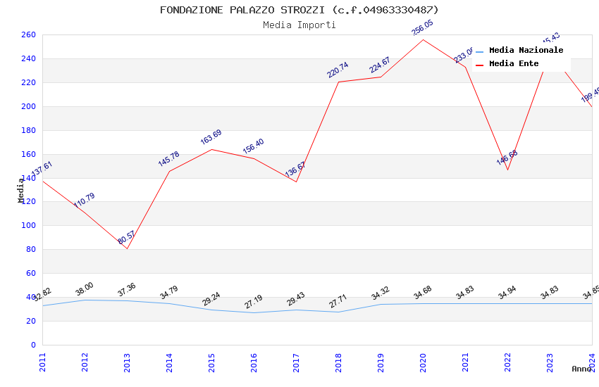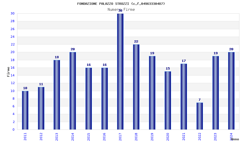 | Anno | Firme | Importi | Media | Naz. | Reg. | Prov. | Comu. |