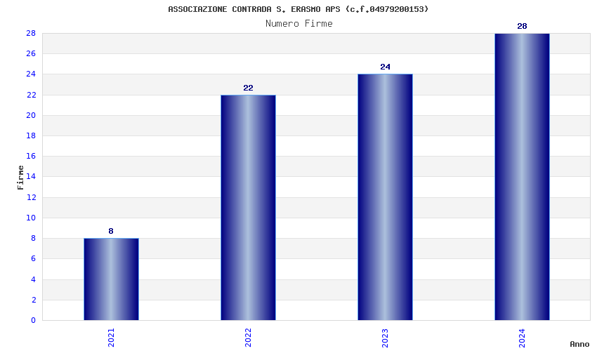 | Anno | Firme | Importi | Media | Naz. | Reg. | Prov. | Comu. |