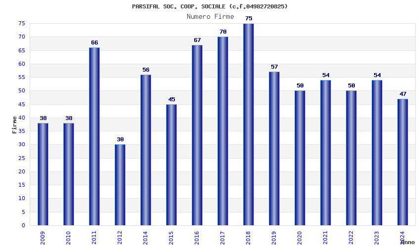 | Anno | Firme | Importi | Media | Naz. | Reg. | Prov. | Comu. |