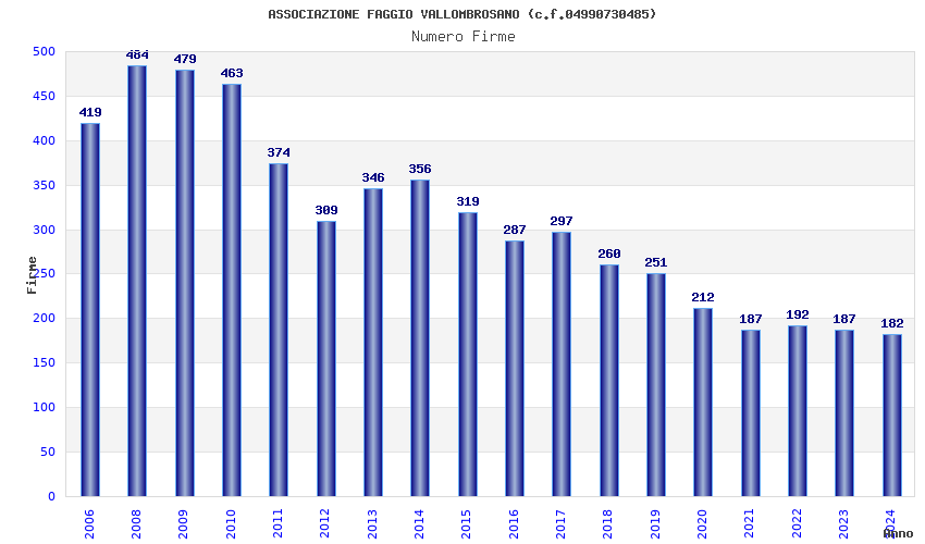 | Anno | Firme | Importi | Media | Naz. | Reg. | Prov. | Comu. |
