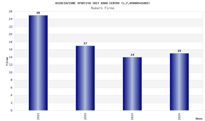| Anno | Firme | Importi | Media | Naz. | Reg. | Prov. | Comu. |