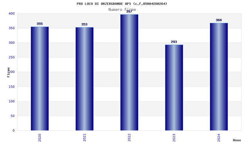 | Anno | Firme | Importi | Media | Naz. | Reg. | Prov. | Comu. |