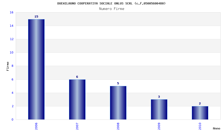 | Anno | Firme | Importi | Media | Naz. | Reg. | Prov. | Comu. |