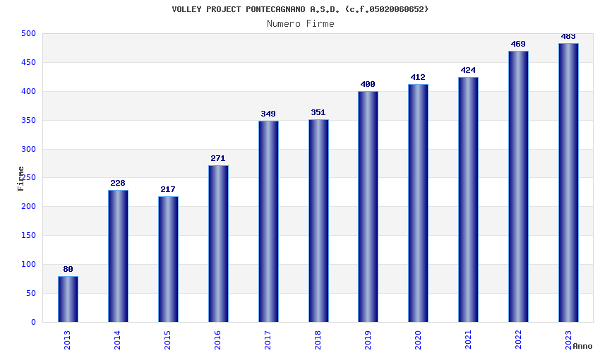 | Anno | Firme | Importi | Media | Naz. | Reg. | Prov. | Comu. |